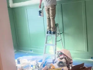 This bold green accent wall adds depth and personality to the space. Our team delivered a smooth, uniform finish with precise edging, elevating the room’s character through expert prep and premium paint.