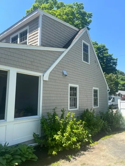 This project involved exterior house painting across multiple architectural surfaces to restore consistency and surface protection. First, the porch flooring, columns, and ceiling were painted to ensure a uniform finish. Additionally, siding and trim areas were coated to reinforce durability and weather resistance. As a result, the exterior now presents a cohesive appearance while maintaining the home’s original character and structural integrity.