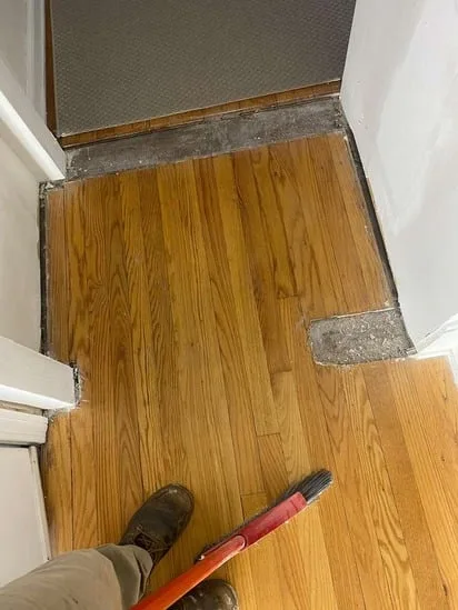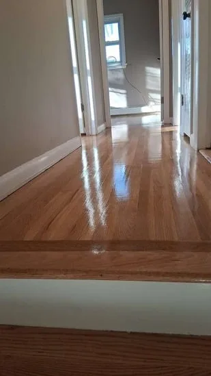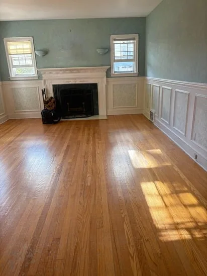 This project involved a detailed hardwood floor restoration, and as a result, the spaces transitioned from worn and uneven surfaces to a unified, refreshed finish. Throughout the process, the work included repairing damaged sections, integrating new boards where needed, sanding the entire floor, and applying a new stain and protective coating. Additionally, the refinished floors helped enhance the contrast between rooms and improve overall continuity, ultimately creating a cleaner and more cohesive interior environment.