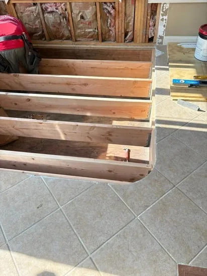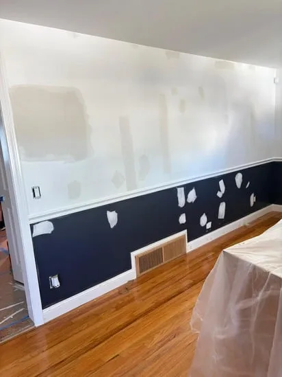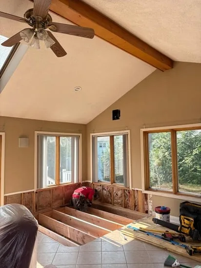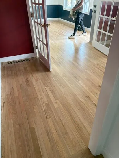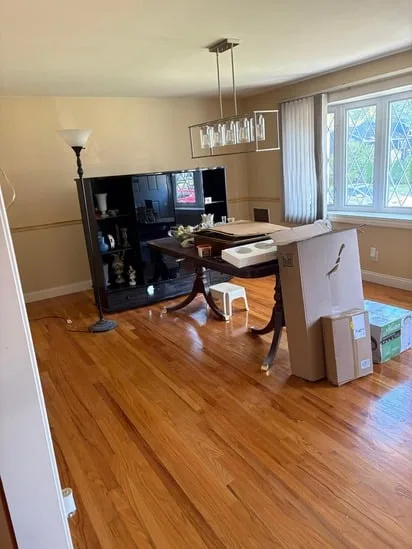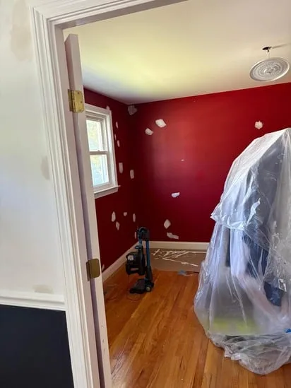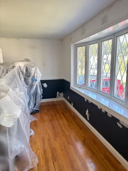 This project involved extensive hardwood refinishing and, additionally, a series of interior renovation steps. Throughout the process, several rooms received freshly sanded and coated hardwood floors, while transition areas were smoothed and restored. Moreover, multiple walls were patched, primed, and repainted to achieve a clean, uniform finish. Structural adjustments, such as exposed framing and preparation for new installations, further contributed to the transformation. As a result, the updated surfaces and renewed finishes created a cohesive and refreshed interior environment.