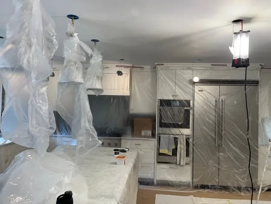 This project involved kitchen drywall finishing and ceiling preparation, and as a result, all cabinetry, appliances, and work surfaces were fully protected during construction. In addition, drywall was installed and finished across the ceiling, ensuring consistent joints and smooth transitions. Throughout the process, openings for lighting and electrical components were properly prepared, and finally, the space was left clean, sealed, and ready for the next phase of interior finishing.