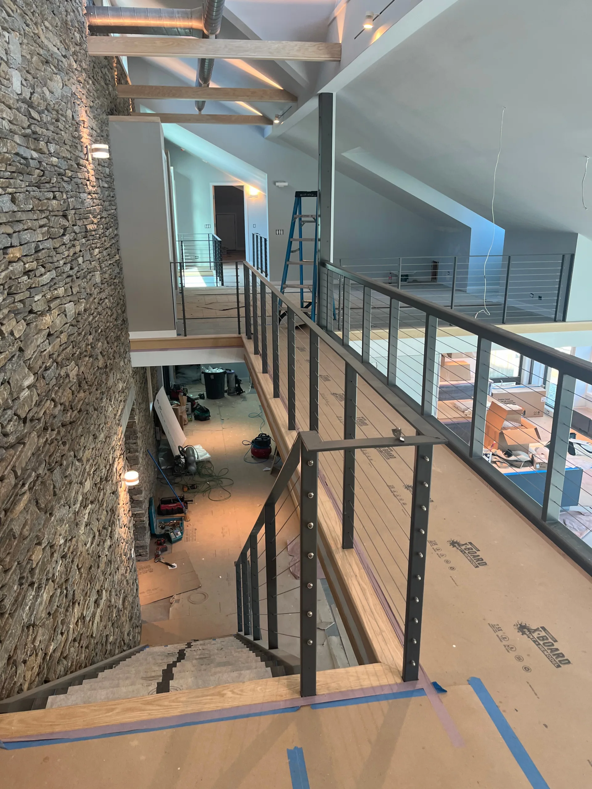 This project involved a comprehensive modern interior renovation focused on balancing structural integrity with contemporary aesthetic updates. Furthermore, the installation of wide-plank flooring and exposed timber beams was prioritized to enhance the home’s architectural character. In addition, the integration of natural stone walls and minimalist railing systems helped create a more cohesive and open floor plan. Ultimately, these modifications resulted in a refined living space that seamlessly blends modern design with organic materials.