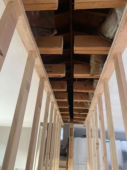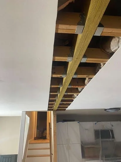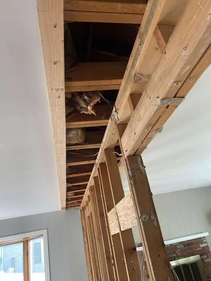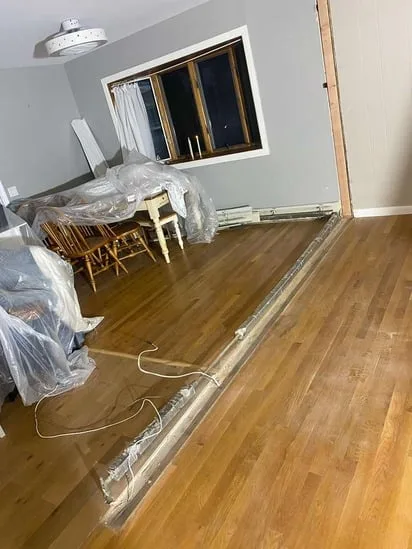 This project focused on Structural Wall Removal Repair, beginning with the removal of a load-bearing wall to open the interior layout. As part of the Structural Wall Removal Repair process, an LVL beam was installed to properly redistribute structural loads and maintain stability. Subsequently, drywall taping and finishing were completed to restore seamless wall and ceiling surfaces. In addition, hardwood floor sections impacted by the wall removal were repaired and blended to ensure a uniform transition across rooms. As a result, the space was structurally reinforced while maintaining visual and functional continuity.